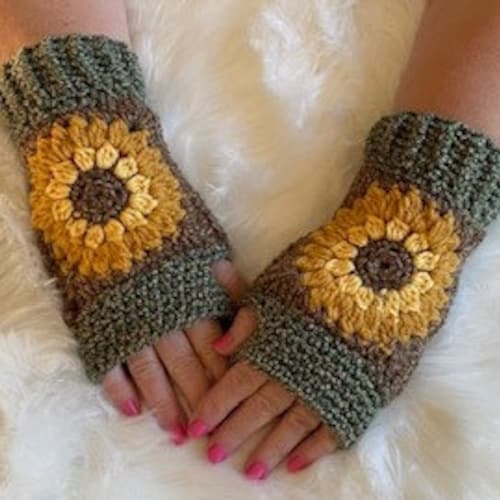 Sunflower Fingerless Gloves Crochet Pattern Etsy